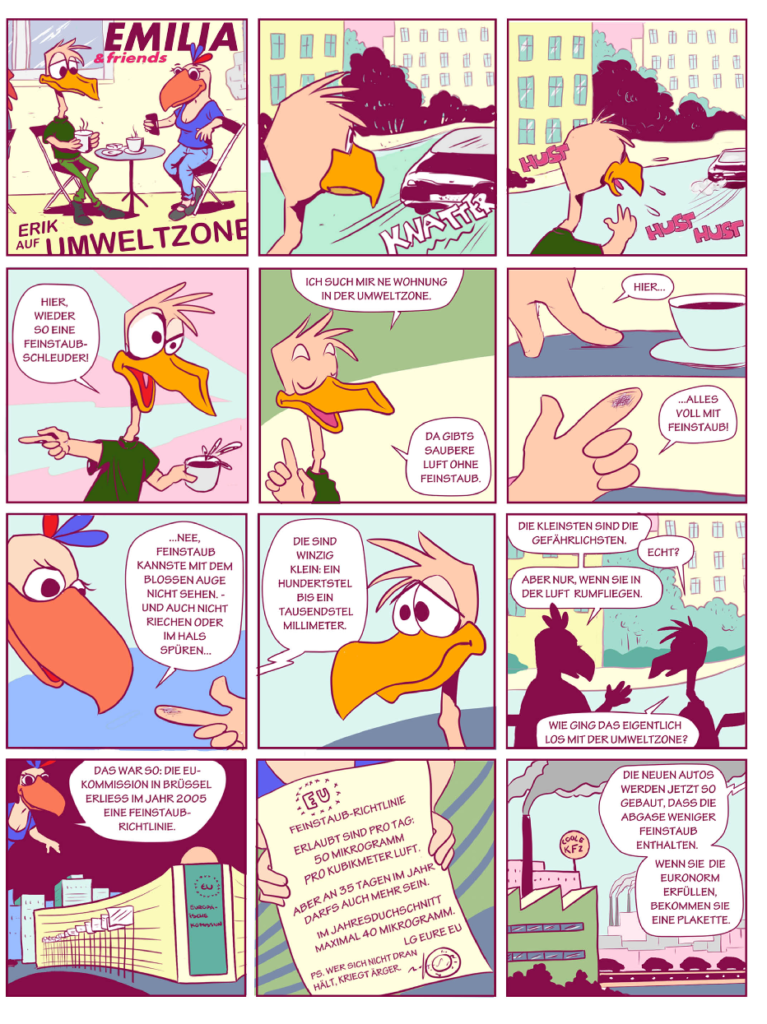 Erik auf Umweltzone May 5, 2017 Livnat InfoComics Related ArtworksWirtschaft auf SchleuderkursAnimation: Emilia & Erik - Dreckecken-ComicAnimation: Emilia & Erik - Die schwarze Null